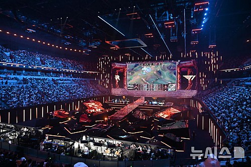 [청두(중국)=뉴시스] 윤정민 기자 = 9일 오후 중국 청두 동안호 스포츠파크 다목적체육관에서 열린 '2025 리그 오브 레전드(LoL) 월드 챔피언십' 결승전이 열렸다. 2025.11.09. alpaca@newsis.com