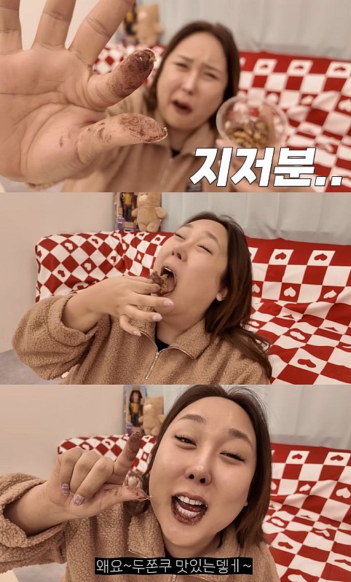 그러면서 두쫀쿠를 손으로 집은 뒤 "질퍽이 갔다"고 말했다.