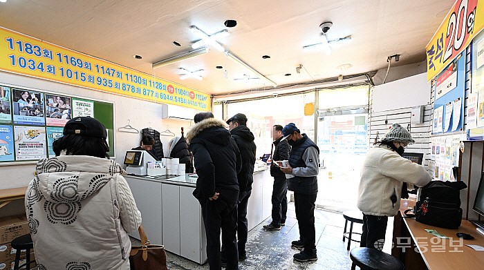 핸드폰을 이용해 모바일 로또 구매가 가능해진 가운데 9일 광주 시내 한 복권판매점에서 시민들이 복권을 구매하고 있다.