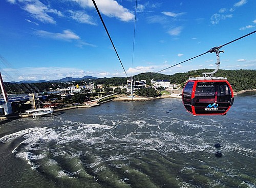 울돌목은 다른 곳에서 보기 힘든 이색적인 모습이 관광객들의 이목을 사로잡고 있다. 시간대를 잘 맞춰서 케이블카를 타게 되면 발 밑으로 바닷물이 회오리치는 신비롭고 짜릿한 모습을 하늘 위에서 즐길 수 있다.